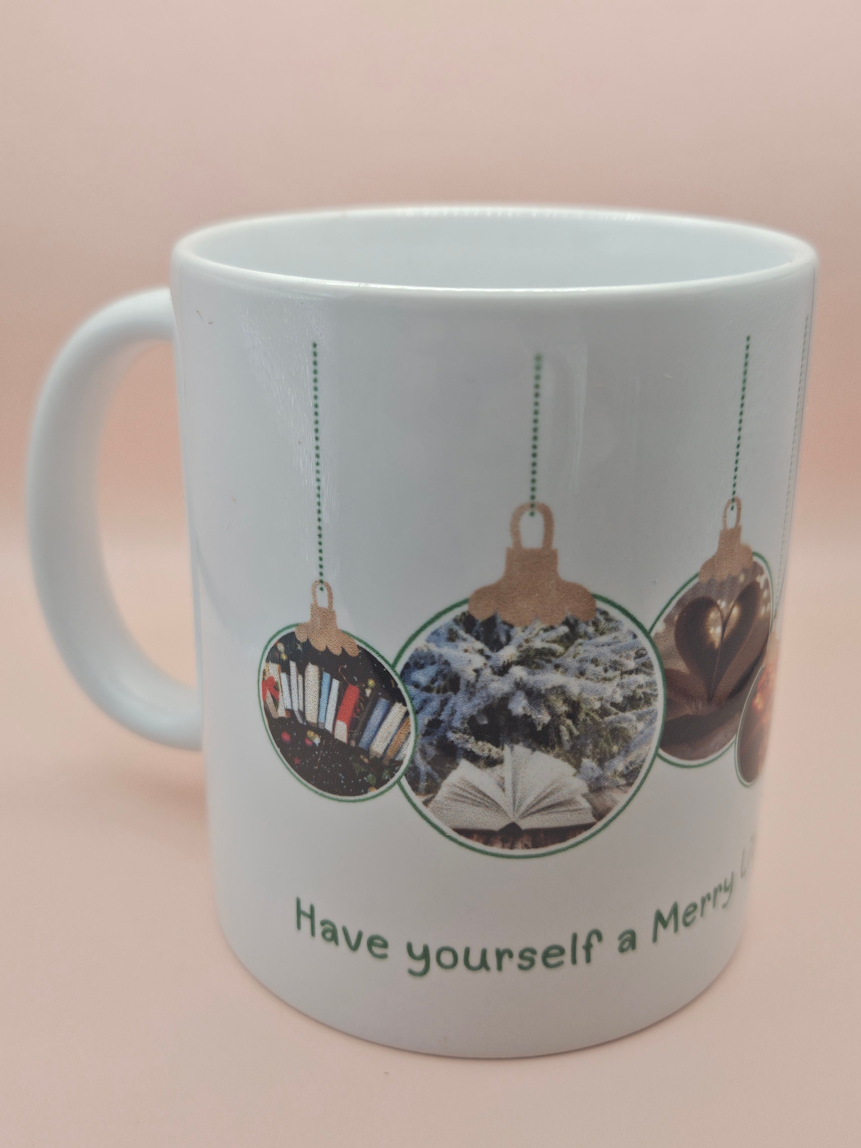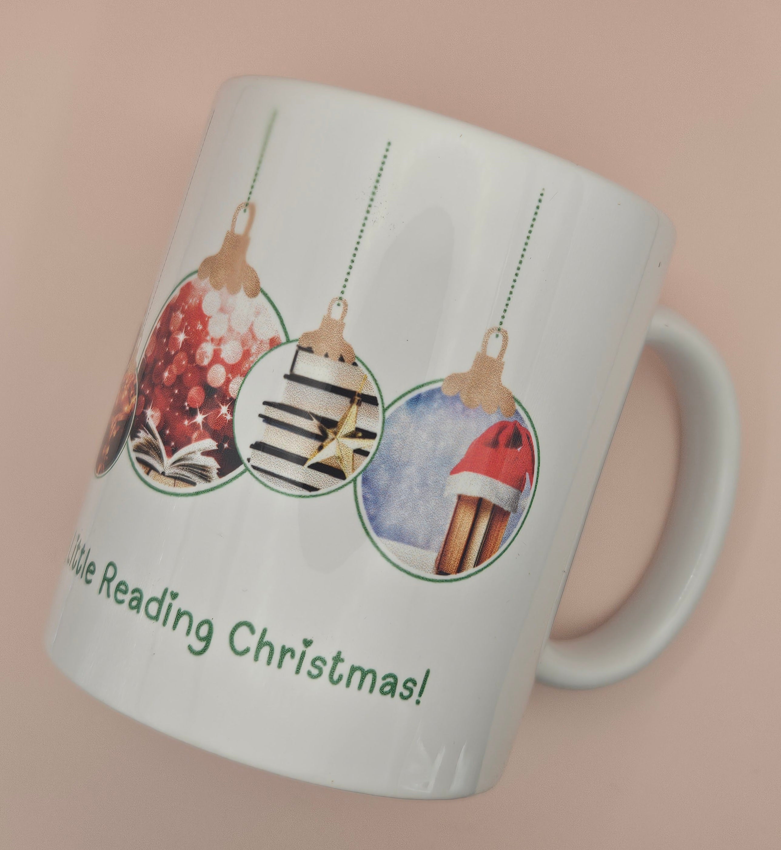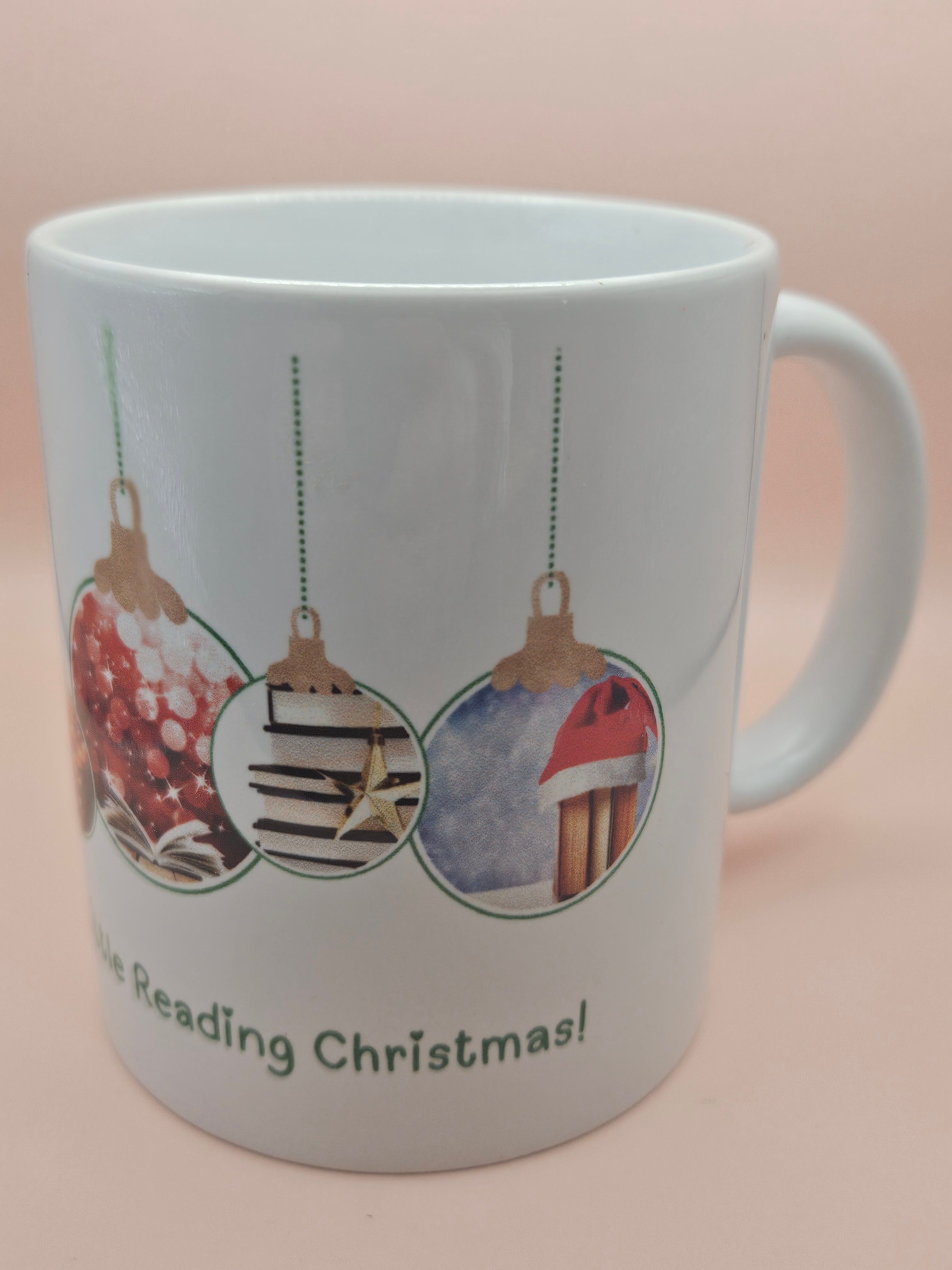 An 11oz mug suitable for dishwasher use which is printed all the way around with a wonderful Christmas Reading vibe and Merry Christmas text.